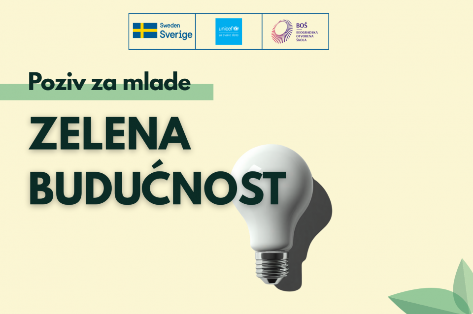 UNICEF i Beogradska otvorena škola pokreću program „Zelena budućnost: Glas mladih za zdravu životnu sredinu u Srbiji“, koji okuplja mlade iz različitih delova zemlje kako bi zajedno radili na rešavanju najvažnijih ekoloških izazova, uzimajući u obzir da se Srbija suočava sa značajnim problemima u oblasti zagađenja vazduha i upravljanja kvalitetom vode.