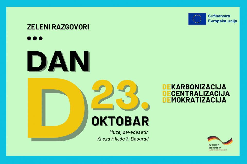 Beogradska otvorena škola organizuje događaj pod nazivom ,,Dan D: dekarbonizacija, decentralizacija, demokratizacija'' koji će se održati u četvrtak, 23. oktobra 2025. godine u Muzeju devedesetih, Kneza Miloša 3, Beograd, sa početkom u 11 časova.